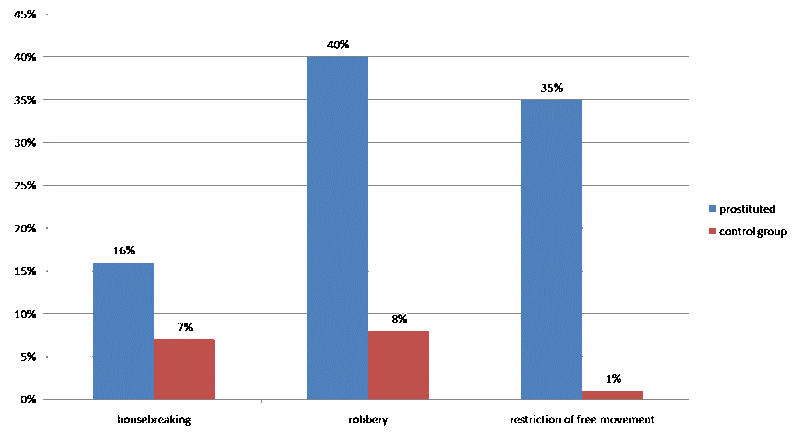 1990年から1999年までの間、女性に対する犯罪のほとんどは屋外での売春(路上やキャラバン:58.3%)であり、2000年から2009年までの間に発生した殺人事件の78%は屋内での売春でした。