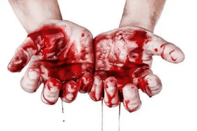 今日の私のテーマ――合法化によって売買春の中の女性が安全になるというのがどうして神話なのか、そして、ドイツというピンプ国家が売買春の中の女性にとって意味することを表現するのになぜこの血まみれの手の写真(下の写真参照)を選んだのか――についてお話しする前に、昨日私たちが行なった性売買反対マーチで起きたことについてみなさんと共有したいと思います。