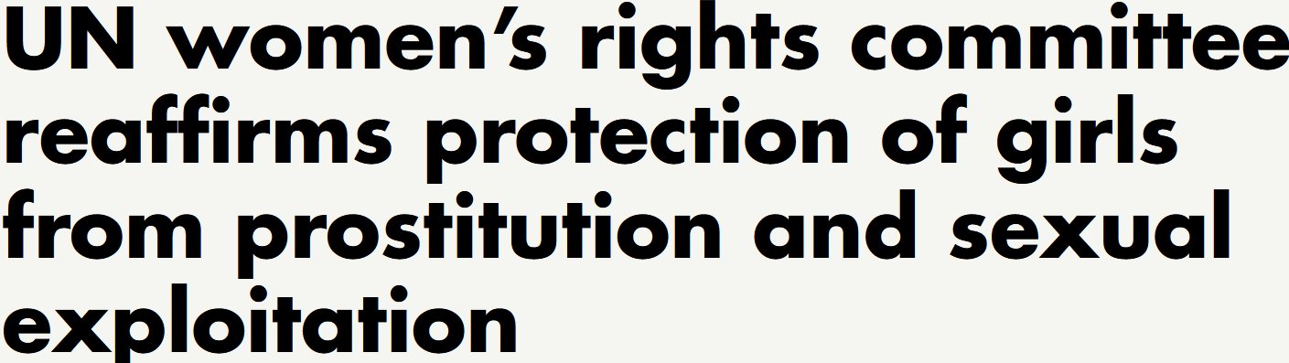 【解説】すでにこのサイトで以前に紹介したように、国連女性差別撤廃委員会(CEDAW委員会)が本年2026年にオランダに関して出した報告書では「セックスワーク」という言葉が使われるとともに、それを容認するような提案が出され続きを読む “テイナ・ビエン=アイメ「女性を裏切るCEDAW委員会」”